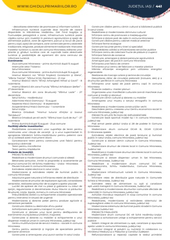 WWW.GHIDULPRIMARIILOR.RO JUDE%u021aUL IA%u0218I / 441- dezvoltarea sistemelor de promovare %u015fi informare turistic%u0103.Infrastructura turistic%u0103 cuprinde doar locurile de cazare disponibile la M%u0103n%u0103stirea Had%u00e2mbu. Dat fiind bog%u0103%u0163ia %u015fi frumuse%u0163ea peisagistic%u0103 a zonei, infrastructura turistic%u0103 poate c%u0103p%u0103ta contur prin investi%u0163ii %u00een pensiuni agroturistice %u015fi spa%u0163ii de alimenta%u0163ie public%u0103, zone de agrement, parcuri %u015fi locuri de joac%u0103 pentru copii, spa%u0163ii de campare, zone comerciale pentru obiectele tradi%u0163ionale, religioase, produse alimentare tradi%u0163ionale. Marcarea traseelor turistice cu acces din comuna Mironeasa, editarea unor pliante %u015fi ghiduri turistice care s%u0103 cuprind%u0103 toate obiectivele turistice %u015fi posibilit%u0103%u0163ile de agrement din zona centrului de informare turistic%u0103Evenimente:Ziua comunei Mironeasa %u2013 prima duminic%u0103 dup%u0103 15 augustHramurile celor 7 biserici Satul Mironeasa:Ziua comunei Mironeasa - prima duminic%u0103 dup%u0103 15 augustHramul Bisericii noi %u201cSfin%u021bii %u00cemp%u0103ra%u021bi Constantin %u015fi Elena%u201d, %u201dSf%u00e2nta Treime%u201d, %u201dSf%u00eentul M Mc Pantelimon - 21 maiHramul Bisericii Vechi %u201cSfin%u0163ii Arhangheli Mihail %u015fi Gavril%u201d - 8 noiembrie;Hramul Bisericii din zona Frunzi%u015f %u201cSf%u00e2ntul Arhidiacon %u015etefan%u201d - 27 decembrieHramul Bisericii din zona Brusture%u0163i %u201cSf%u00e2ntul Laz%u0103r%u201d - 27 decembrieSatul Schitu - Had%u00e2mbului:Adormirea Maicii Domnului%u00a0- 15 augustNa%u015fterea Maicii Domnului - 8 septembrieAcoper%u0103m%u00e2ntul Maicii Domnului%u00a0- 1%u00a0octombrieSatul Ur%u015fi%u0163a:Biserica Ortodox%u0103: %u201cHramul tuturor sfin%u0163ilor %u0219i Izvorul T%u0103m%u0103duirii%u201dBiserica Ortodox%u0103 pe stil vechi: %u201cSf%u00e2ntul Ioan Gur%u0103 de Aur%u201d - 27 noiembriePrima duminic%u0103 dup%u0103 15 august - Ziua comune%u00a0Facilit%u00e3%u0163i oferite investitorilor:Posibilitatea concesion%u0103rii unor suprafe%u0163e de teren pentru construirea unor c%u0103su%u0163e de vacan%u0163%u0103%u00a0 %u015fi a unui supermarket %u00een apropierea M%u00e2n%u0103stirii Schitu-Had%u00e2mbului pentru pelerinii care vin %u015fi viziteaz%u0103 acest monument istoricConcesionare teren pentru construirea unei fabrici pentru teracot%u0103 %u015fi c%u0103r%u0103mid%u0103Teren pentru microfermeTeren pentru %u00eemp%u0103durireProiecte de investi%u0163ii:PROIECTE INI%u021aIATEReabilitare %u0219i modernizare drumuri comunale %u0219i s%u0103te%u0219tiBetonarea %u0219an%u021burilor, intr%u0103ri la propriet%u0103%u021bi %u0219i acostamente pe drumul comunal DC 49 Schitu Had%u00e2mbu %u2013 Ur%u0219i%u021ba - MironeasaPavare trotuare %u00een comuna MironeasaExtinderea re%u021belei electrice %u00een satul Ur%u0219i%u021baModernizarea %u015fi extinderea re%u021belei de iluminat public %u00een comuna MironeasaAduc%u021biune gaze naturale %u0219i %u00eenfiin%u021barea re%u021belei de distribu%u021bieModernizarea drumurilor de exploatare agricol%u0103, consolidarea versan%u021bilor, realizarea %u0219an%u021burilor de scurgere a apelor pluvialeLucr%u0103ri de ap%u0103rare de mal cu plase %u015fi gabioane cu ziduri de sprijin, regularizarea %u0219i decolmatarea r%u00e2ului Stavnic %u0219i p%u00e2r%u00e2urilor Brusture%u0163, Ur%u015fi%u0163a, %u015eipote, Armanu %u00een comuna Mironeasa%u00cembun%u0103t%u0103%u021birea dot%u0103rii cu echipamente a bazelor opera%u021bionale pentru interven%u021bii %u00een situa%u021bii de urgen%u021b%u0103Modernizarea %u0219i dotarea pie%u021bei pentru produse agricole %u0219i alimentare perisabileConstruire cl%u0103dire cu destina%u021bie oficiu postal Achizi%u021bionare auto pentru transport %u00een comunConstruire %u0219i dotarea unui local pentru desf%u0103%u015furarea de evenimente (nun%u0163i,botezuri,%u00eent%u00e2lniri, majorate)Construirea %u0219i dotarea cu mobilier %u0219i echipamente a unui dispensar medical uman %u00een comuna Mironeasa, jude%u0163ul Ia%u015fiCentru multifunc%u021bional de servicii medico %u2013 sociale %u00een comuna MironeasaCentru pentru asisten%u021b%u0103 %u0219i %u00eengrijire de specialitate pentru persoane v%u00e2rstniceConstruirea %u0219i amenajarea unui punct sanitar %u00een satul Ur%u0219i%u021baConstruire cl%u0103dire pentru c%u0103min cultural %u0219i bibliotec%u0103 public%u0103 %u00een satul Ur%u0219i%u021baReabilitarea %u0219i modernizarea c%u0103minului cultural%u00cenfiin%u021bare centru de promovare a me%u0219te%u0219ugurilor%u00cenfiin%u021bare %u0219i dotare post de radio %u00een comuna MironeasaConstruire cl%u0103dire pentru cabinet medical veterinar%u00cenfiin%u021bare ferme ecologiceConstruire locuin%u021be pentru tineri %u0219i speciali%u0219ti%u00cembun%u0103t%u0103%u021birea calit%u0103%u021bii %u0219i eficientizarea serviciilor publice%u00cenfiin%u021bare centru de colectare fructe de p%u0103dure %u0219i ciuperci%u00cenfiin%u021bare fabric%u0103 de conserveConstruire, amenajare %u0219i dotare pensiune agroturistic%u0103Amenajare parc de joac%u0103 %u00een comuna Mironeasa%u00cenfiin%u021barea unei fabrici de ciment%u00cenfiin%u021barea unui centru de fabricare a maselor plasticeM%u0103rirea eficien%u021bei energetice prin utilizarea energiilor regenerabileRealizarea de marcaje rutiere %u015fi semne de circula%u0163ieDezvoltarea c%u0103ilor de circula%u0163ie pietonal%u0103 (trotuare, alei) %u015fi a drumurilor periferice %u00een comuna Mironeasa%u00cenfiin%u0163area unor spa%u0163ii de joac%u0103 pentru copii %u00een comuna MironeasaProiecte cadastru- master planuriOrganizarea unor manifest%u0103ri culturale care s%u0103 marcheze ziua comunei %u015fi tradi%u0163ii %u015fi obiceiuriConstruire c%u0103min cultural %u015fi dotarea cu mobilierAmenajarea unui muzeu a satului etnografic %u00een comuna MironeasaReabilitarea %u015fi modernizarea construc%