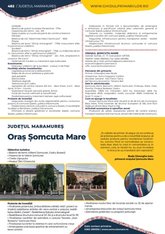 482 / JUDE%u021aUL MARAMURE%u0218 WWW.GHIDULPRIMARIILOR.ROCet%u0103%u0163ele:Biserica de piatr%u0103 Cuvioasa Paraschiva - 1794Clopotni%u0163a din lemn - sec. XIXMasa mo%u015filor %u015fi crucile de piatr%u0103 din cimitirul bisericiiD%u0103ne%u015fti:Biserica de zid %u201cAdormirea Maicii Domnului%u201d - 1820Plopi%u015f:Biserica de lemn %u201cSfin%u0163ii Arhangheli%u201d - 1798, monument aflat %u00een patrimoniul UNESCO%u015eurde%u015fti:Biserica de lemn %u201cSfin%u0163ii Arhangheli%u201d - 1766, cu %u00een%u0103l%u0163imea de 54 m, monument aflat %u00een patrimoniul UNESCOBiserica de lemn %u201cSfin%u0163ii Arhangheli%u201d - sec. XVII, amplasat%u0103 %u00een cimitirul %u201cPe Corni%u201dHotel Secret Garden cu tratament ape sulfuroaseEvenimente:Festivalul Ud%u0103toriu de la %u015eurde%u015fti - a doua zi de Pa%u015ftiFacilit%u00e3%u0163i oferite investitorilor:Legisla%u0163ia privind zona defavorizat%u0103Re%u0163ea de drumuri asfaltate %u015fi pietruiteAp%u0103 potabil%u0103ElectricitateTelefonie digital%u0103Televiziune prin cabluApropiere de centre urbane (20 km - Baia Mare, 5 km - Baia Sprie, 10 km - Cavnic)Exploatare resurse naturale (piatr%u0103, lemn)For%u0163%u0103 de munc%u0103 calificat%u0103 %u015fi necalificat%u0103Posibilitate pentru tratament balnear (ape sulfuroase)Proiecte de investi%u0163ii:Asigurarea energiei din surse regenerabile pentru consumul propriu al comunei %u0218i%u0219e%u0219ti, jude%u021bul%u00a0Maramure%u0219Modernizare c%u0103mine culturale %u00een comuna %u0218i%u0219e%u0219ti, %u00een localit%u0103%u021bile Surde%u0219ti %u0219i Bont%u0103ieni, jude%u021bul Maramure%u0219%u00cenfiin%u021bare %u0219i dotare gr%u0103dini%u021b%u0103%u00a0 %u00een localitatea %u0218i%u0219e%u0219ti, comuna %u0218i%u0219e%u0219ti, jude%u021bul Maramure%u0219Elaborarea %u00een format GIS a documentelor de amenajare a teritoriului %u0219i planificare urban%u0103%u00a0 plan urbanistic general al comunei %u0218i%u0219e%u0219ti jude%u021bul Mmaramure%u0219Dotarea cu mobilier, materiale didactice %u0219i echipamente digitale a %u0219colilor din comuna %u0218i%u0219e%u0219ti, jude%u021bul%u00a0Maramure%u0219Asigurarea infrastructurii pentru transportul verde %u2013 its/alte infrastructuri TICModernizare infrastructur%u0103%u00a0 drumuri comunale %u00een comuna %u0218i%u0219e%u0219ti, jude%u021bul Maramure%u0219ORA%u0218UL %u015eOMCUTA MAREAdres%u0103: Some%u0219, nr. 17; Cod po%u0219tal: 437335Telefon: 0262-280055; Fax: 0262-281080; Adresa de e-mail: primaria@somcutamare.roeconomic@somcutamare.roURL: www.somcutamare.roPersoane din primarie:Primar: Gheorghe Ioan BudaViceprimar: Sorin Dragomir CiolteaSecretar General%u00a0: Alin Florin Toma%u015eef Serviciu Economic: Tatiana BotSate %u00een administra%u021bie:%u015eomcuta Mare, Buciumi, V%u0103lenii Somcutei, Finteu%u015fu Mare, Ciolt, Hovrila, Finteus Buteasa, CodruSuprafa%u021ba:%u00a0 11829 ha; Intravilan:%u00a0 5213 ha; Extravilan:%u00a0 6616 ha; Popula%u021bia:%u00a0 8103; Gospod%u0103rii:%u00a0 4400; Locuin%u021be:%u00a0 3589; Gr%u0103dini%u021be:%u00a0 8; %u0218coli:%u00a07; Licee:%u00a01; Cum se ajunge in localitate:Ora%u0219ul %u0218omcuta Mare este situat%u0103%u00a0la 26 de km de municipiul Baia Mare, fiind traversat de drumul European (E 58) care face leg%u0103tura dintre Baia Mare %u0219i DejActivitati economice si specifice zonei:Produc%u021bie de pele%u021bi, expoatarea pietrei de carier%u0103 (calcar), transport %u0219i prelucrare marmur%u0103, v%u00e2nz%u0103ri de material de construc%u021bii,