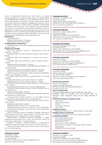 WWW.GHIDULPRIMARIILOR.RO JUDE%u021aUL OLT / 567cum o fi. Deprinderile %u0163%u0103ranului jian de a munci %u015fi a veghea asupra p%u0103m%u00e2ntului ca acesta s%u0103 dea roade s-au pierdut odat%u0103 cu desr%u0103d%u0103cinarea. Tarlalele au mai supravie%u0163uit doi-trei ani cu rezerva de erbicide acumulat%u0103 %u00een ani %u015fi ani, dup%u0103 care buruienile au invadat culturile %u015fi proprietarii, dep%u0103%u015fi%u0163i de costurile muncii adecvate a culturilor, au l%u0103sat totul %u00een paragin%u0103, lucr%u00e2nd doar locurile din vatra satului din lunca Olte%u0163ului. De icr%u0103 de p%u0103m%u00e2nt cum afirm%u0103 cei mai v%u00e2rstnici, a fost l%u0103sat de izbeli%u015fte. %u015ei c%u00e2nd te g%u00e2nde%u015fti c%u0103 %u00een alte %u0163%u0103ri, se import%u0103 p%u0103m%u00e2nt pentru a se pune pe piatr%u0103 pentru culturi! La toate astea se adaug%u0103 indiferen%u0163a cu care trateaz%u0103 actualii proprietari efectele dezastrelor naturale %u015fi cele provocate cu bun%u0103 %u015ftiin%u0163%u0103 de marea majoritate a lor.Evenimente:T%u00e2rg s%u0103pt%u0103m%u00e2nalB%u00e2lciul de Sf%u00e2nta Maria %u2013 15 AugustS%u0103rb%u0103toarea C%u0103lu%u0219ului (Rusaliile)Facilit%u00e3%u0163i oferite investitorilor:Posibilitatea de a se racorda la sistemul de gaze %u0219i la sistemul de ap%u0103 curent%u0103Proiecte de investi%u0163ii:Planul de Urbanism General %u0219i Regulamentul local de urbanism %u2013 finalizatAmenajare parc %u0219i loc de joac%u0103 pentru copii %u00een Iancu Jianu %u2013 finalizat%u00cenfiin%u021bare sistem de canalizare %u00een comuna Iancu Jianu %u2013 finalizatExtindere re%u021bea de alimentare cu ap%u0103 %u00een c%u0103tunul Rudari %u2013 finalizatModernizare iluminat public %u2013 finalizat%u00cenfiin%u021bare sistem canalizare %u00een satele Dobriceni %u0219i Preo%u021be%u0219ti %u2013 %u00een curs de execu%u021bieModernizare drumuri de exploatare agricol%u0103 %u2013 finalizatModernizare drumuri comunale L=5,97 km %u2013 finalizatAsfaltare drumuri strada Viilor, strada Corboaia %u0219i strada Barbu %u0218tirbei %u2013 zona Prim%u0103rie %u2013 finalizatExtindere modernizare drumuri comunale 6,6 km %u2013 %u00een curs de execu%u021bieModernizare drumuri comunale L=0,72 km %u2013 finalizatModernizare drumuri comunale L=0,65 km %u2013 finalizatExtindere re%u021bea de alimentare gaze naturale %u00een comuna Iancu Jianu -finalizatProiectare sediu Prim%u0103rie nou.-%u00een curs de implementareProiectare Centru de permanen%u021b%u0103 medical %u00een spa%u021biul rural- %u00een curs de execu%u021bieAsfaltare strada Merilor- finalizatForarea unui pu%u021b pentru %u00eembun%u0103t%u0103%u021birea func%u021bion%u0103rii sistemului de alimentare cu ap%u0103-finalizatConstruire bloc locuin%u021be sociale cu 24 de unit%u0103ti locative, Comuna Iancu Jianu, jude%u021bul Olt%u201d-%u00een curs de execu%u021bieExtindere re%u021bea de alimentare gaze naturale %u00een comuna Iancu Jianu-finalizatAsfaltare strada Merilor-finalizatModernizare str%u0103zi- 6.6 km %u2013%u00een curs de execu%u021bieModernizare drum Iancu Jianu- Dobre%u021bu -%u00een curs de execu%u021bie%u00cenfiin%u021bare parc fotovoltaic %u00een comuna Iancu Jianu, jude%u021bul Olt%u00een curs de execu%u021biePiste de biciclete pentru facilitarea mobilit%u0103%u021bii alternative nepoluante pe DJ 643 (str. Barbu %u0218tirbei)%u2019%u2019, localitea Iancu Jianu, comuna Iancu Jianu, jude%u021bul%u00a0Olt- %u00een curs de execu%u021bieModernizarea %u0219i cre%u0219terea eficien%u021bei energetice a cl%u0103dirii publice-liceul tehnologic Iancu Jianu, comuna Iancu Jianu, sat Iancu Jianu, jude%u021bul%u00a0Olt-- %u00een curs de execu%u021bieDotarea cu mobilier , materiale didactice %u0219i echipamente digitale a Liceului Tehnologic Iancu Jianu- %u00een curs%u00a0de%u00a0execu%u021bieDotarea c%u0103minului cultural din comuna Iancu Jianu, jude%u021bul Olt- %u00een curs%u00a0de%u00a0execu%u021bieCOMUNA ICOANACod po%u0219tal: 237225Telefon: 0249-483021; Fax: 0249-483011; Adresa de e-mail: primaria_icoana_olt@yahoo.comURL: www.primariaicoana.roCOMUNA IPOTE%u015eTIAdres%u0103: str. Principala. nr. 99Cod po%u0219tal: 237261Telefon: 0760-143244, 0766-613456; Adresa de e-mail: contact@primaria-ipotesti.roURL: www.primaria-ipotesti.roCOMUNA IZBICENIAdres%u0103: B-dul. Mihai Viteazu, Nr. 112Cod po%u0219tal: 237230Telefon: 0249-535002; Fax: 0249-535001; Adresa de e-mail: primaria_izbiceni@yahoo.comURL: http://www.izbiceniolt.roCOMUNA IZVOARELEAdres%u0103: T%u0103nase Constantin, nr. 58Cod po%u0219tal: 237235Telefon: 0249-486048; Fax: 0249-486078; Adresa de e-mail: consiliul_local_izvoarele@yahoo.comURL: http://www.primariaizvoareleolt.roCOMUNA LELEASCACod po%u0219tal: 237240Telefon: 0249-469502; Fax: 0249-469502; Adresa de e-mail: contact@primarialeleasca.roURL: http://www.primarialeleasca.ro/COMUNA M%u0102RUN%u0162EICod po%u0219tal: 237250Telefon: 0249-467301, 467309; Fax: 0249-467301, 467309; Adresa de e-mail: secretar@primariamaruntei.roURL: www.primariamaruntei.roPersoane din primarie:Primar: Emil%u00a0PopescuViceprimar: Eugen BecheanuSecretar General: Elena Ramona%u00a0BecheanuContabil: Florina%u00a0%u00a0IovaSate %u00een administra%u021bie:M%u0103run%u0163ei, G%u00e2ldae, Gig%u00e2rtu, Vii%u015foara, B%u0103l%u0103ne%u015fti, Malu-Ro%u015fuSuprafa%u021ba:%u00a0 6015 ha; Intravilan:%u00a0 418 ha; Extravilan:%u00a0 5597 ha; Popula%u021bia:%u00a0 4486; Gospod%u0103rii:%u00a0 1586; Locuin%u021be:%u00a0 1586; Gr%u0103dini%u021be:%u00a0 3; %u0218coli:%u00a03; Activitati economice si specifice zonei:Agricultur%u0103Mor%u0103rit %u015fi panifica%u0163ieComer%u0163Fabric%u0103 de c%u0103r%u0103mid%u0103Agricultur%u0103Obiective turistice:Rezerva%u0163ie natural%u0103 %u201cIris%u201d - a florei %u015fi faunei - Malu-Ro%u015fuFacilit%u00e3%u0163i oferite investitorilor:P%u0103r%u0163ile vor c%u0103dea de comun acord asupra condi%u0163iilorProiecte de investi%u0163ii:Amenajare rigole %u015fi poduriAmenaj