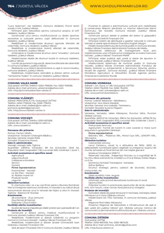 %u201dLuca Solomon%u201d, sat Vaideeni, Comuna Vaideeni, Punct teren %u0219coala V-VIII, Jude%u021bul V%u00e2lcea%u00cenfiin%u021bare parc fotovoltaic pentru consumul propriu al UAT Vaideeni, Jude%u021bul V%u00e2lceaConstruirea unui centru multifunc%u021bional cu dot%u0103ri sportive, recreative %u0219i culturale pentru copii defavorizati %u00een Comuna Vaideeni, Jude%u021bul V%u00e2lceaReabilitare %u0219i modernizare drumuri agricole afectate de calamit%u0103%u021bi, Comuna Vaideeni, Jude%u021bul V%u00e2lceaReabilitare %u0219i modernizare toren%u021bi afecta%u021bi de calamit%u0103%u021bi, Comuna Vaideeni, Jude%u021bul V%u00e2lceaAmenajare %u0219i modernizare drumuri zona %u201cUrsule%u021bu%u201d, comuna Vaideeni, jude%u021bul V%u00e2lceaModernizarea re%u021belei de drumuri locale %u00een comuna Vaideeni, Jude%u021bul V%u00e2lceaLucr%u0103ri pe punere %u00een siguran%u021b%u0103, obiective afectate de calamit%u0103%u021bi %u00een comuna Vaideeni, jude%u021bul V%u00e2lceaRealizarea unui sistem de alimentare cu ap%u0103 %u00een zona Ursule%u021bu, comuna Vaideeni, jude%u021bul V%u00e2lcea Reabilitare, modernizare, extindere %u015fi dotare c%u0103min cultural %u201cVartolomei Todeci%u201d %u00een comuna Vaideeni, jude%u021bul V%u00e2lceaCOMUNA VALEA MARECod po%u0219tal: 247730; Telefon: 0250-769536; Fax: 0250-769536; Adresa de e-mail: primaria_valeamare@yahoo.comURL: http://primariavaleamare-valcea.roCOMUNA VL%u0102DE%u015eTIAdres%u0103: PRINCIPAL%u0102, FN; Cod po%u0219tal: 247740Telefon: 0250-776049; Fax: 0250-776012; Adresa de e-mail: vladesti@vl.e-adm.roprimaria.vladesti@gmail.comURL: http://www.vladesti-valcea.roCOMUNA VOICE%u015eTICod po%u0219tal: 247745; Telefon: 0250-831508; Adresa de e-mail: voicesti@vl.e-adm.roURL: www.voicesti.roPersoane din primarie:Primar: Florian V%u0103tafuViceprimar: Octavian Gheorghe B%u0103d%u00eercuSecretar General: Ionela PieleContabil: Florentina FloroiuSate %u00een administra%u021bie:Voice%u015fti, Voice%u015fti Vale, TighinaSuprafa%u021ba:%u00a0 2300ha; Intravilan:%u00a0 89 ha; Extravilan:%u00a0 1248 ha; Popula%u021bia:%u00a01540; Gospod%u0103rii:%u00a0720; Locuin%u021be:%u00a0920; Gr%u0103dini%u021be:%u00a01; %u0218coli:%u00a01; Activitati economice si specifice zonei:Agricultur%u0103Legumicultur%u0103Cre%u015fterea animalelor ServiciiComer%u0163Firme reprezentative:Euromarket - Voice%u0219tiLa Doi Pasi - Voice%u0219tiSc Rodian Invest SrlProduse locale: LegumeObiective turistice:%u00cen memoria celor ce s-au sacrificat pentru f%u0103urirea Rom%u00e2niei Mari %u0219i %u00eentregirea neamului rom%u00e2nesc, %u00een Voice%u0219ti s-au ridicat dou%u0103 monumente istorice unul %u00een Voice%u0219ti de Mijloc %u0219i altul %u00een Voice%u0219ti Tighina - Biserica Sf. NicolaeEvenimente:26 octombrie - Ziua comuneiZiua femeii (8 Martie)%u00cen%u0103l%u021barea%u00a0( Ziua Eroilor)Facilit%u00e3%u0163i oferite investitorilor:Scutire de taxe %u015fi impozite pe cl%u0103diri %u015fi teren pe o perioad%u0103 de 1 anProiecte de investi%u0163ii:Construire %u0219i dotare centru medical multifunc%u021bional %u00een Comuna Voice%u0219ti,Jude%u021bul V%u00e2lcea Finan%u021bare CNIReabilitare, modernizare %u0219i dotare Gr%u0103dini%u021b%u0103%u00a0 cu program normal %u00een Comuna Voice%u0219ti , Jude%u021bul V%u00e2lcea Finan%u021bare CNIReabilitare, modernizare %u0219i dotare %u0218coala Gimnazial%u0103%u00a0 Ioan Didicescu Voice%u0219ti Finan%u021bare CNISal%u0103%u00a0de sport Finan%u021bare CNI %u00een Comuna Voice%u0219ti ,Jude%u021bul V%u00e2lceaPunerea %u00een valoare a patrimoniului cultural prin reabilitarea %u0219i%u00a0 conservarea Bisericii parohiale cu Hramul Adormirea Maicii Domnului, Sat Voice%u0219ti, Comuna Voice%u0219ti ,Jude%u021bul V%u00e2lcea Finan%u021bare CNIConstruire %u0219an%u021buri dalate %u0219i pode%u021be din beton la gospod%u0103rii de-a lungul DJ 648 B Finan%u021bare CNI%u00cenfiin%u021bare sistem de distribu%u021bie a gazelor naturale %u00een comuan Voice%u0219ti %u0219i satele apar%u021bin%u0103toare%u00a0finan%u021bare Anghel SalygniModernizarea sistemului de iluminat public %u00een Comuna Voice%u0219ti, Jude%u021bul V%u00e2lcea%u00a0finan%u021bare Administra%u021bia Fondului de MediuDezvoltarea sistemului de management local prin implementarea unor infrastructuri inteligente la nivelul Comunei Voice%u0219ti , judetul V%u00e2lcea%u201d finantare PNRR%u00cenfiin%u021bare re%u021bea public%u0103%u00a0 ap%u0103%u00a0 uzat%u0103%u00a0 %u0219i sta%u021bie de epurare %u00een comuna Voice%u0219ti, jude%u021bul V%u00e2lcea, Finan%u021bare CNIModernizarea sistemului de iluminat public %u00een Comuna Voice%u0219ti, Jude%u021bul V%u00e2lcea ,finan%u021bare Administra%u021bia Fondului de Mediu Dotarea cu echipamente a Serviciului Voluntar pentru situa%u021bii de urgen%u021b%u0103%u00a0 , Comuna Voice%u0219ti , jude%u021bul V%u00e2lcea finan%u021bare Ministerul Agriculturii %u0219i Dezvolt%u0103rii Rurale Agen%u021bia pentru Finan%u021barea Investi%u021biilor RuraleCOMUNA VOINEASAAdres%u0103: I. Gh. Duca, nr. 98; Cod po%u0219tal: 247750Telefon: 0250-754309; Fax: 0250-754310; Adresa de e-mail: voineasa@vl.e-adm.roURL: www.primariavoineasa.roPersoane din primarie:Primar:%u00a0Gabriel Sebastian%u00a0%u00a0N%u0103st%u0103sescuViceprimar: Ana-Maria MardaleSecretar General: Ana Izabella%u00a0%u00a0TertereanuContabil: Nicoleta Suzana%u00a0Filigean%u00a0Sate %u00een administra%u021bie:Voineasa, Voine%u0219i%u021ba, Valea M%u0103ce%u015fului, Punctul Vidra, Punctul Ob%u00e2%u0219ia LotruluiSuprafa%u021ba:%u00a046121,9 ha; Intravilan:%u00a0359,14 ha; Extravilan:%u00a045762,76 ha; Popula%u021bia:%u00a01540; Gospod%u0103rii:%u00a0870; Locuin%u021be:%u00a0550; Gr%u0103dini%u021be:%u00a01; %u0218coli:%u00a01; Activitati economice si specifice zonei:Prelucrarea lemnuluiAgroturism- Form%u0103 de turism %u00een care cazarea %u0219i masa sunt asigurate %u00een gospod%u0103rii %u021b%u0103r%u0103ne%u0219tiFirme reprezentative:Balindru SRL , Platanus SRL, Mirad 